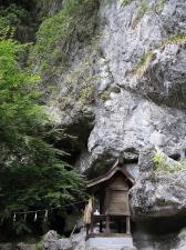 穴(洞窟)が開いており、入口と内部に それぞれ祠を建てて祀られている。 |