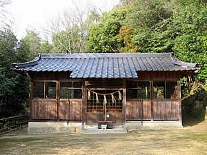 西江原地区の東端、東江原との境目あたりの丘の上に鎮座。その丘のすぐ南側を国道486号と小田川、さらには旧山陽道が通る。