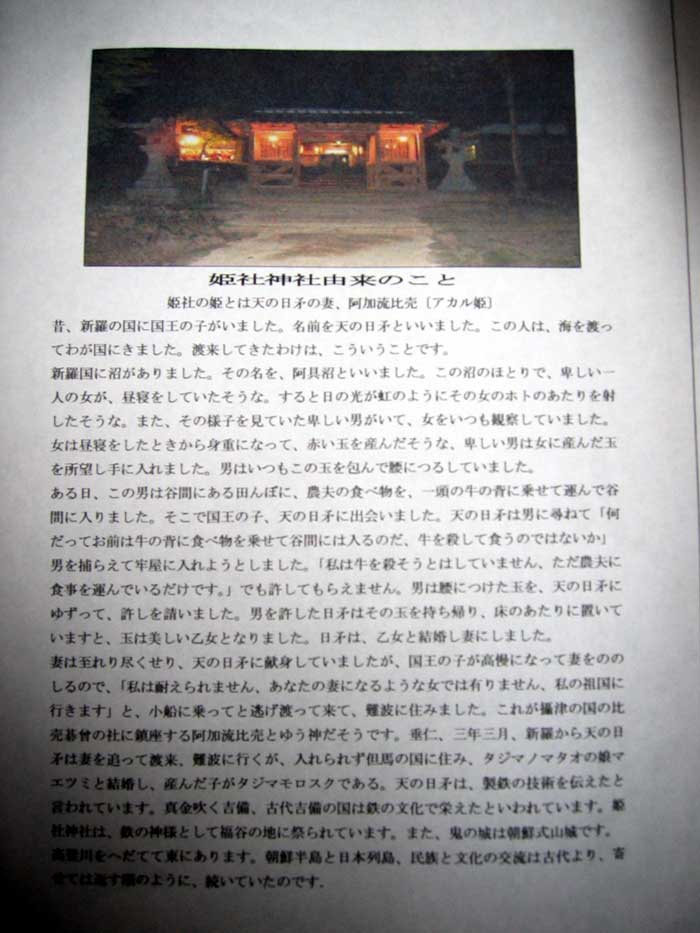 比売許曽神(阿加流比売)と 天日槍に関する伝承も残されています。