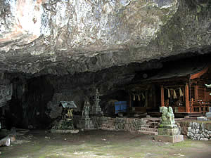 大石灰岩の洞窟の神さびたご神域は広島県天然記念物に指定され、学術的価値も高く、洞内は夏は涼しい。