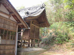 参道の突き当たりに南向きの境内があります。 そこから境内を左に迂回するように細い道があり、山へ登っていくようになっています(車も1台程度通れる、舗装された道)。
