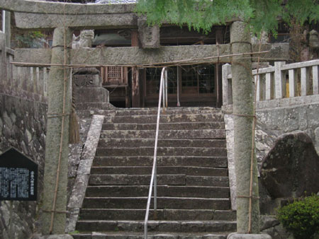あとで気付いたのですが、社頭の階段の南側にもう一つ階段がありました。その向こうに見えるのは明神社。こちらは明神社のための入口だと思われます。